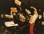 Description :4.1 : FRANCOIS TESSIER ET JO-ANNE BLOUIN TIENNENT UN CAHIER. ILS SEMBLENT CHANTER OU LIRE A HAUTE VOIX. DECOR MONTRANT LES STEREOTYPES FEMININS ET MASCULINS. 4.2 : JO-ANNE BLOUIN, FRANCOIS TESSIER ET JACQUES ROUTHIER INTERPRETENT UNE SCENE DE ...