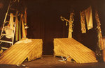 Description :DEUX TRAPPES D'OU SURGIRONT LES COMEDIENS SONT POSEES SUR LA SCENE. DES CORDES A LINGE ET UNE ECHELLE COMPLETENT LE TOUT.