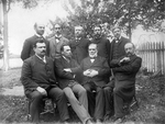 Description :GROUPE DE MEDECINS POSANT A L'EXTERIEUR SUR LES TERRAINS DE L'HOSPICE DU SACRE-COEUR. AU PREMIER RANG ON RETROUVE LES DOCTEURS P.PELLETIER, JUDES(OU JULES)-OLIVIER CAMIRAND, I.FREGEAU ET J.A.M.ELIE. AU DEUXIEME RANG LES DOCTEURS W.LAMY, J.F.RI...