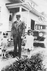 Description :TROIS PERSONNES PRENNENT LA POSE. PROBABLEMENT DES MEMBRES OU DES PROCHES DE LA FAMILLE NOEL. L'HOMME PORTE UN HABIT ET UN CHAPEAU. LES DEUX FILLETTES PORTENT DES ROBES. CELLE DE DROITE A UNE CASQUETTE. L'UNE D'ENTRE ELLES SERAIT FRANCINE FOUQ...