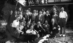 Description :RASSEMBLEMENT DES MEMBRES MASCULINS DE LA CHORALE STE-THERESE D'AVILA FONDEE PAR LEONIDAS BACHAND AU CHALET DE C.E.BACHAND (LAKE PARK) A DEAUVILLE