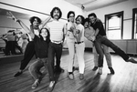 Description :DANS UNE SALLE DE REPETITION AVEC GRAND MIROIR, LES MEMBRES DE LA BEBELLE SE PRESENTENT. DE GAUCHE A DROITE: FRANCINE CHRETIEN, LAURENCE TARDIF, ROBERT ?, FRANCOIS TESSIER, GUY OUELLET, SYLVAIN ?, ? NERON PORTANT UNE MOUSTACHE.