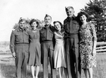 Description :1.1 : GROUPE DE MILITAIRES ET DE FEMMES DANS UN CHAMPS. DE GAUCHE A DROITE : PAUL VINCENT, CLAIRE LANGIS, GERARD SAVARD, ?, ?, ?. - 1.2 : PAUL VINCENT, CLAIRE LANGIS, ?, ?, GERARD SAVARD ASSIS A UNE TABLE. CAMP MILITAIRE DERRIERE ET D'AUTRES T...
