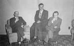 Description :EN HABIT, TROIS EMPLOYES PRENNENT LA POSE. CE SONT : ?, ANDRE POULIN ET PHILIAS DUMAS JR.