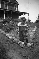 Sujet principal :BERNARD BOISCLAIR, JEUNE HOMME, DEVANT LE CHATEAU HOWARD