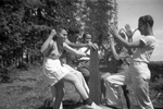Description :JEUNES GENS SE FAISANT DES GRIMACES AUTOUR D'UNE BORNE INDIQUANT: BOUNDARY AUGUST 1842.