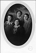 Description :QUATRE SOEURS LANGIS. PHOTO DE STUDIO. PREMIERE RANGEE : ALMA. DEUXIEME RANGEE : BELLA, CECILE, EVA.