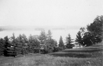 Description :VUES SUR LES RIVES DE L'ILE. 1.1 PHOTO PRISE DE L'ILE VERS LE LAC. 1.2 PHOTO PRISE DU LAC VERS L'ILE. A L'ARRIERE-PLAN, LE CHATEAU HOWARD. LE NEGATIF MONTRE L'ENSEMBLE D'UNE AUTRE HABITATION INSTALLEE SUR LA RIVE DU LAC.