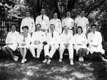 Description :PERSONNEL DE L'HOPITAL DES ENFANTS MALADES DE TORONTO. RANGEE DU HAUT, PREMIER A GAUCHE : LEO LANGIS. LES EMPLOYES DE L'HOPITAL SONT NOMMES AU BAS DE L'IMAGE.