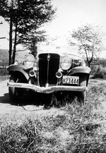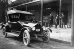 Description :UNE VOITURE DE MARQUE FORD, MODELE RUNABOUT EST STATIONNEE. LA PLAQUE D'IMMATRICULATION EST SUR LE DEVANT DE L'AUTO, ENTRE LES DEUX PHARES. ELLE A UN TOIT EN TOLE FERME DE TYPE DECAPOTABLE. TROIS HOMMES REGARDENT LA VOITURE. ILS SONT INSTALLES...