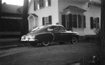 Description :LA VOITURE EST STATIONNEE DANS UNE COUR DE MAISON. LA VOITURE EST VUE DE BIAIS. ON APERCOIT LA DECORATION QUE CHRYSLER POSAIT SUR SES VOITURES (SUR LE CAPOT).