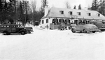 Description :SEPT VOITURES STATIONNEES DEVANT LE "CHALET DES VOYAGEURS". UNE VOITURE EST DECAPOTABLE. A GAUCHE, LONG VEHICULE QUI DOIT SERVIR DE MINIBUS. DES GENS SONT REGROUPES SUR LA TERRASSE. CINQ LUCARNES SONT SUR LE TOIT DE L'HOTEL; DEUX CHEMINEES S'E...