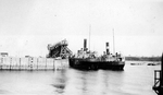 Description :DEUX TRAVERSIERS SONT AMARRES AU PORT DE MATANE. DE GAUCHE A DROITE : LE JOHN O. M'KELLAR, PROPRIETE DE NEWCASTLE COMPANY ET LE PORTWELL, PROPRETE DE NEWCASTLE COMPANY. TROIS PERSONNES SONT SUR LE QUAI DU JOHN O. M'KELLAR.