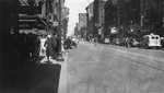 Description :VUE GENERALE DE LA RUE OU ON PERCOIT UNE CIRCULATION INTENSE ET UNE ACTIVITE COMMERCIALE FRENETIQUE. DOUZE PERSONNES MARCHENT SUR LE TROTTOIR ET TROIS INDIVIDUS TRAVERSENT LA RUE. DES BOUTIQUES SONT INSTALLEES LE LONG DE L'ARTERE. HUIT AUTOMOB...