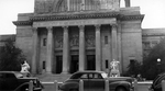 Description :FACADE DU MUSEE. SIX COLONNES GRECQUES SONT DEVANT LES PORTES D'ENTREES. ON APERCOIT L'INSCRIPTION "DEDICATED TO ART AND FREE TO ALL - MDCDIII" QUI EST GRAVEE DANS UN BLOC DE PIERRE, REPOSANT SUR LE DESSUS DES COLONNES. UNE SCENE EST REPRESENT...