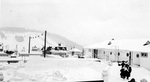 Description :LA PENTE DE SKI DE STE-ADELE-DES-MONTS ET QUELQUES MAISONS A SES PIEDS. LA PATINOIRE EXTERIEURE EST SURPLOMBEE D'AMPOULES ELECTRIQUES POUR L'ECLAIRER. CINQ PERSONNES SORTENT D'UN CHALET.