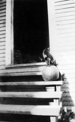 Sujet principal :CHAT NOIR SUR UNE CITROUILLE