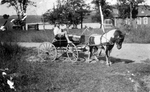 Sujet principal :LEO LANGIS SUR UNE CHARETTE CONDUITE PAR UN CHEVAL