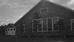 Description :EDIFICE D'UN ETAGE ET DEMI VU DE COTE. COTES EN BARDEAUX. GRANDE VITRINE A CARREAUX AU CENTRE. DEUX AUTRES FENETRES DE CHAQUE COTE ET UNE AU-DESSUS. LARGE CORNICHE. UN GARAGE DE MEME FORME UN PEU PLUS LOIN.