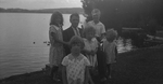 Description :HECTOR VERRET, JEAN DESILETS, IRENE DESILETS, FRANCOISE DESILETS, ANDREE DESILETS ET LOUISE DESILETS PRENNENT LA POSE SUR UNE PLAGE. HECTOR EST ASSIS SUR UNE CHAISE BERCANTE. LES AUTRES SONT DEBOUT OU AGENOUILLES. DERRIERE EUX, UN LAC AVEC QUE...