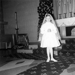 Sujet principal :HELENE LANGIS A ENVIRON 8 ANS, A L'EGLISE POUR SA PREMIERE COMMUNION
