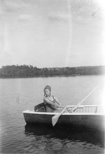 Sujet principal :LOUISE DESILETS DANS UNE BARQUE, PROBABLEMENT AU LAC MASSAWIPPI