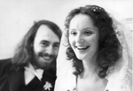 Description :LES DEUX MARIES VUS DE PRES. - 6.1 : LES DEUX MARIES SOURIANTS, VUS DE PROFIL. MICHEL PORTE UN HABIT AVEC UN NOEUD PAPILLON ET ARBORE LE LOOK TYPIQUE DES ANNEES 1970 : BARBE, MOUSTACHE ET CHEVEUX LONGS. AUDE PORTE UNE ROBE BLANCHE. SES CHEVEUX...
