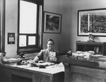 Description :NOUS CROYONS QU'IL S'AGIT DE LOUIS-PHILIPPE DEMERS A SON BUREAU A L'OFFICE DU TOURISME DE SHERBROOKE