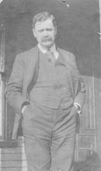 Description :HECTOR VERRET PREND LA POSE LES MAINS DANS LES POCHES. IL PORTE UN HABIT ET UNE CRAVATE. IL A UNE LARGE MOUSTACHE.