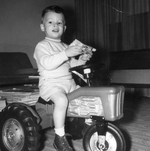 Sujet principal :FRANCOIS LANGIS, AGE D'ENVIRON 2 ANS SUR UN TRACTEUR-JOUET