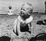 Description :75.1 : JEAN GRENIER A QUATRE PATTES SUR UNE PLAGE. IL PORTE UNE CAMISOLE BLANCHE. UN CAMION-JOUET A DROITE. EN ARRIERE, SUR LE BORD DE L'EAU, UN ENFANT EST ASSIS. - 75.2: ROBERT, JEAN ET CHARLES GRENIER JOUENT DANS LE SABLE. ILS SONT AGES D'EN...