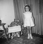 Description :76.1 : UNE FILLETTE PREND LA POSE A COTE D'UNE CRECHE ET D'UN VILLAGE DE NOEL. ELLE PORTE UNE ROBE BLANCHE ET DES SOULIERS BLANCS. - 76.2 : IRENE ET HELENE PRENNENT LA POSE. A L'ARRIERE DES DEUX FILLETTES VETUES DE LEUR ROBE DU TEMPS DES FETES...