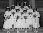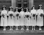Description :PLACEES DEVANT LA FACADE DE L'EDIFICE NORTON, ECOLE DES INFIRMIERES, LES DIPLOMEES SONT SUR UNE RANGEE : JOY OLSON, LILA COATES, PHYLLIS FISCHER, MISS C.R. AITKENHEAD, DIRECTRICE DES INFIRMIERES, LAURA BROOKS, PHYLLIS SANDELL, DOROTHY DEACON. ...