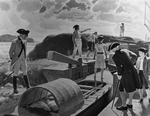 Description :CHANTIER DE CONSTRUCTION SUPERVISE PAR LE CAPITAINE TWISS. LE TABLEAU REPRESENTE UNE SCENE DE 1783. IL Y A TROIS TRAVAILLEURS, TROIS SUPERVISEURS ET UN SOLDAT.
