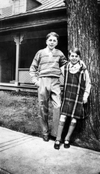 Sujet principal :LEO LANGIS ET CLAIRE LANGIS DEVANT LA MAISON DES VOISINS, LA FAMILLE GUAY