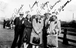 Description :45.1 : G. PERRON (AVEC RESERVES), M. LEMAY, G. ROBERGE (AVEC RESERVES), A. BRUNEAU, G. MARCOUX. LES HOMMES PORTENT TOUS DES CHAPEAUX A RUBAN ET DES CRAVATES. LA QUATRIEME PERSONNE A UN RUBAN SUR LE COEUR. LES FEMMES ONT UNE FLEUR SUR LEUR MANT...