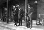 Sujet principal :RODOLPHE LANGIS ET CINQ PERSONNES SUR LE LARGE PERRON DU SHERBROOKE HOUSE
