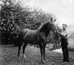 Sujet principal :UN ETALON NOIR AVEC UN HOMME