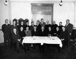 Personnages :ASSIS: A.C.SKINNER; L'ABBE MAURICE O'BREADY; GERARD DESMARAIS; M.LE JUGE FABRE-SUVEYER; J.O.L.MICHAUD (PRES. CHAMBRE DE COMMERCE); LE CHANOINE NAPOLEON CODERE; MGR EMILE VINCENT; GASTON DESMARAIS DEBOUT: ASHTON TOBIN; LOYD SOMERVILLE (PRINCIPA...