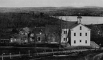 Description :VUE SUR LES BATIMENTS ET CHAPELLE DE L'ABBAYE ST-BENOIT-DU-LAC. A L'ARRIERE-PLAN, LE LAC MEMPHREMAGOG. IL S'AGIT DE LA PREMIERE ABBAYE.