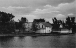 Description :VUE A PARTIR DU LAC MEMPHREMAGOG DE L'ARRIERE DE L'EDIFICE DU BATTLE'S HOUSE ET DE LA TERRASE DU CLUB BEAU SITE, A MAGOG
