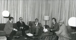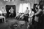 Description :1.1 - LE MAIRE JACQUES O'BREADY, DEBOUT S'ADRESSE A PLUSIEURS PERSONNES DONT CERTAINES SE TIENNENT DEBOUT EGALEMENT TANDIS QUE D'AUTRES SONT ASSISES SUR UN DIVAN. QUELQUES VERRES SONT PLACES SUR UNE TABLE BASSE DEVANT LE GROUPE. CELA SE PASSE ...