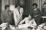 Description :2 PHOTOS RETENUES, 6.1 - LE MAIRE ? DE LA MUNICIPALITE ET MARC BUREAU. 6.2 - MARC BUREAU SIGNANT LE LIVRE D'OR.