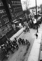 Sujet principal :VUE EN PLONGEE DE LA RUE CATHEDRALE A SHERBROOKE LORS DU FESTIVAL DES CANTONS