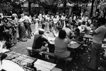 Description :COMPOSEE EN BONNE PARTIE DE PERSONNES DU TROISIEME AGE, UNE FOULE S'EST RASSEMBLEE A LA "PLACE DE L'AGE D'OR". EN AVANT-PLAN, ON RECONNAIT DE GAUCHE A DROITE: LOUIS BILODEAU, JEAN MARCHAND, IRENEE PELLETIER ET MARC BUREAU.